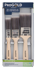 A professional trade synthetic brush with excellent paint pick up and release. Ideal for water based gloss and emulsion paints. (Set contents: 2x 1.5'' 2x 2'' 1x 3'')