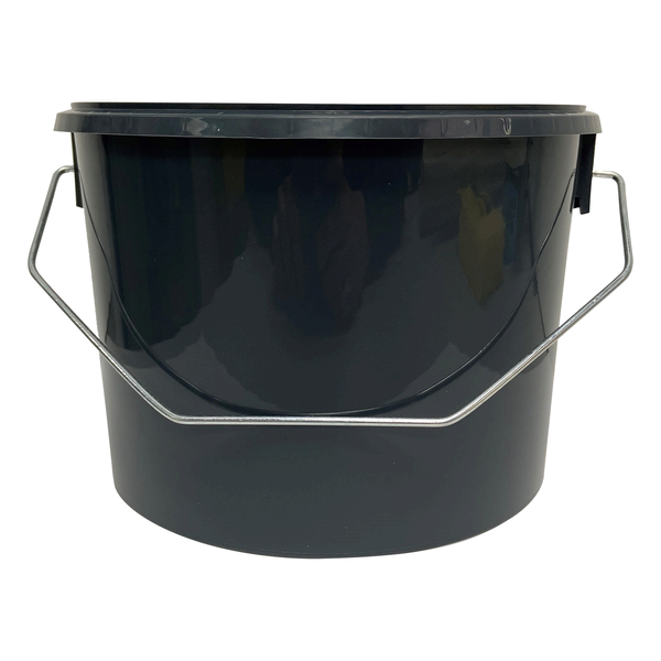 Plastic bucket with metal handle. Lightweight, general duty. 3 Gallon capacity.