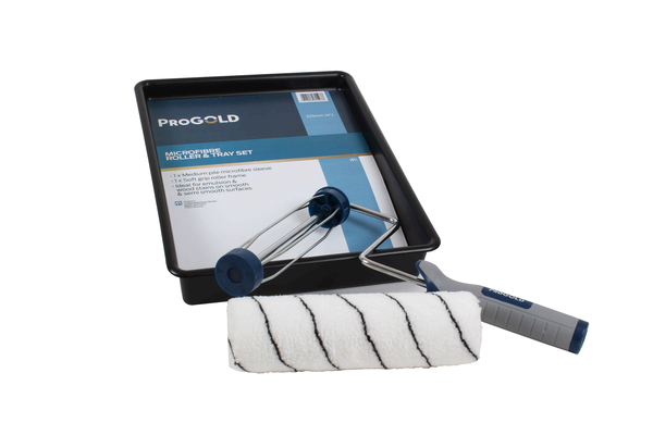 ProGold Microfibre Roller and Tray Set is ideal for emulsion and woodstains on smooth and semi smooth surfaces. (Set contents: 1x 9'' Medium Pile Microfibre Sleeve, 1x 9'' Soft Grip Roller Frame)