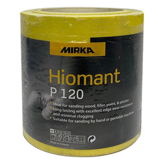 115mm x 10m Hiomant P120 roll. Its durable backing material makes the product long lasting with super edge wear resistance