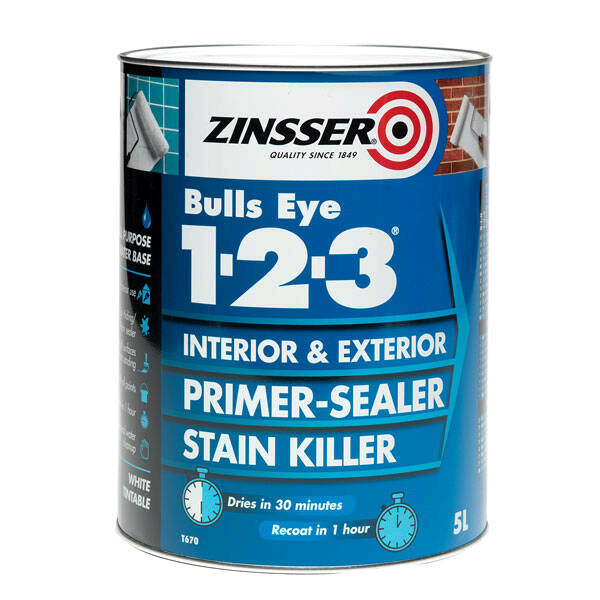 Zinsser Bulls Eye® 1-2-3 is the classic universal interior and exterior, water-based, primer-sealer. It offers low odour application, quick drying convenience and excellent adhesion to glossy surfaces.