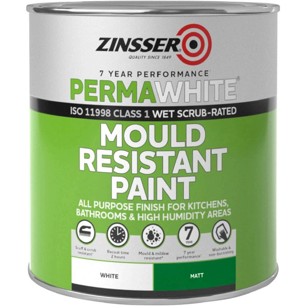 Perma-White® interior paint has a unique formulation, it contains a biocide that protects the dried coating against fungal degradation. The paint film is designed to resist cracking, peeling and blistering for up to 7 years before first maintenance.